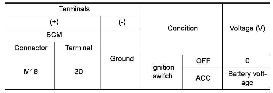 Check voltage between BCM harness connector and ground under the following conditions.