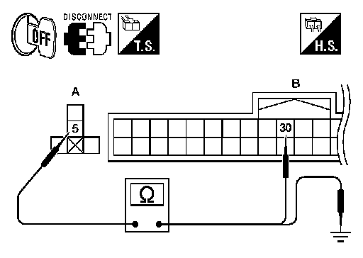 2.Check continuity between ACC relay harness connector (A) and