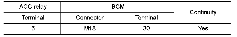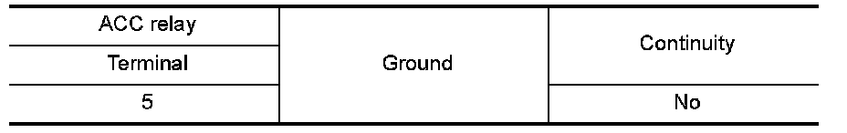 3.Check continuity between ACC relay harness connector and ground.