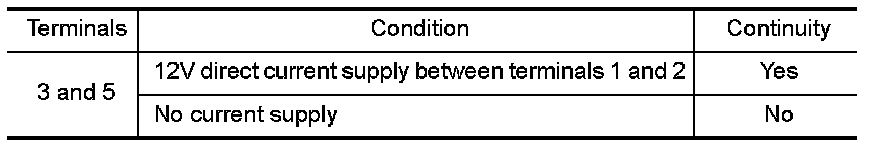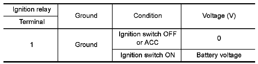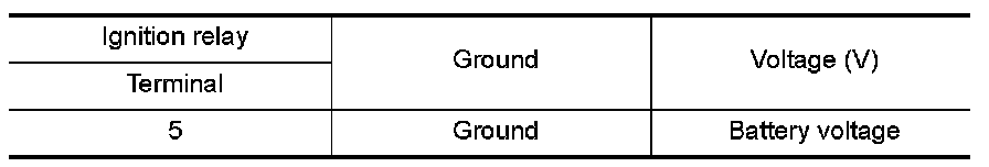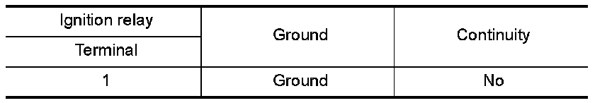 3.Check the continuity between ignition relay terminals under the following conditions.