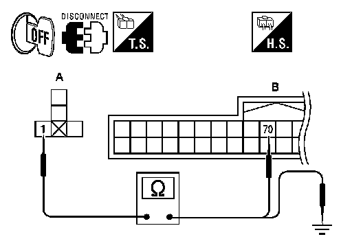 4.Check continuity between ignition relay harness connector (A) and ground.