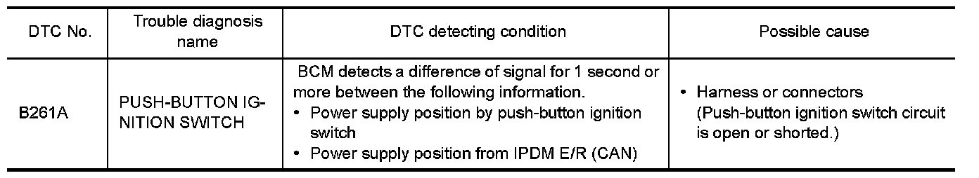 BCM transmits the change in the power supply position with the push-button ignition switch to IPDM E/R via the CAN communication line. IPDM E/R transmits the power supply position status via CAN communication line to BCM.