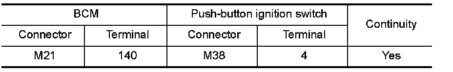 2.Check continuity between BCM harness connector and push-button ignition switch harness connector.