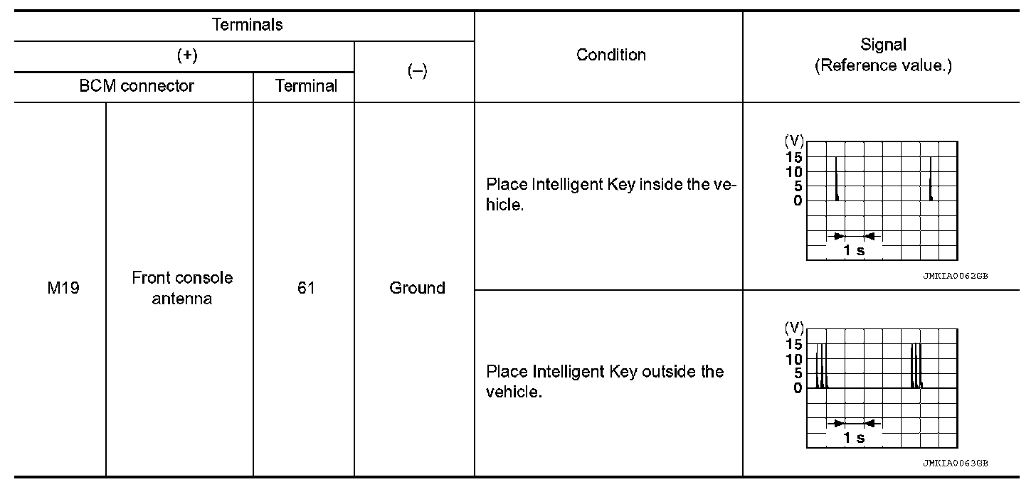 1.Perform front console antenna INSIDE ANT DIAGNOSIS on "Work Support" of "INTELLIGENT KEY".