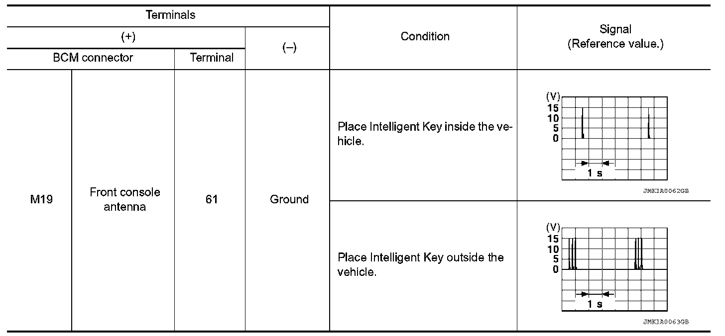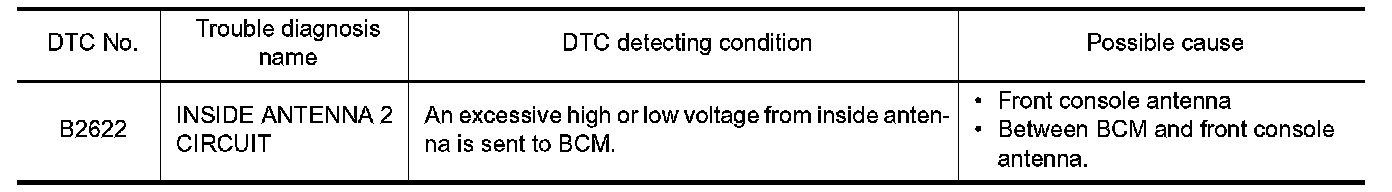 1.Perform front console antenna INSIDE ANT DIAGNOSIS on "Work Support" of "INTELLIGENT KEY".