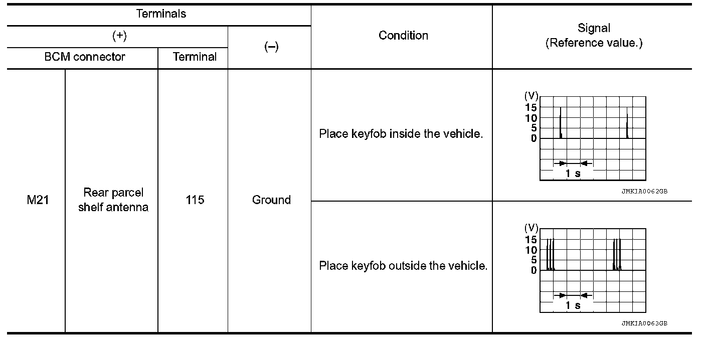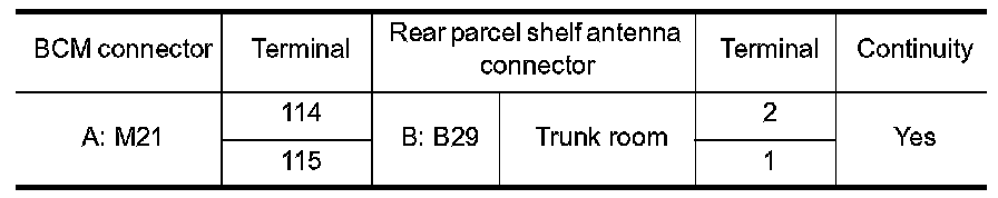 2.Check continuity between BCM connector and rear parcel shelf antenna connector.