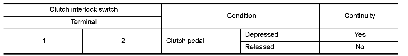 3.Check continuity between clutch interlock switch harness connector and ground.