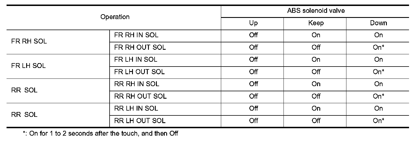 The solenoid valve increases, holds or decreases the fluid pressure of each brake caliper according to the signals transmitted by the ABS actuator and electric unit (control unit).