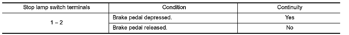 3.Check continuity between stop lamp switch terminals.