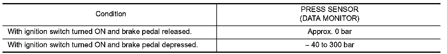 On "DATA MONITOR", select "PRESS SENSOR" and check the brake fluid pressure.