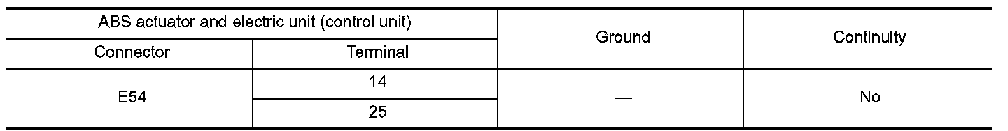 2.Check continuity between ABS actuator and electric unit (control unit) connector E54 and ground.