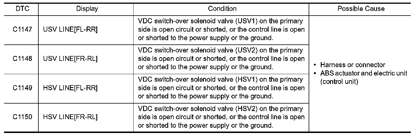 Is DTC C1147, C1148, C1149 or C1150 detected?
