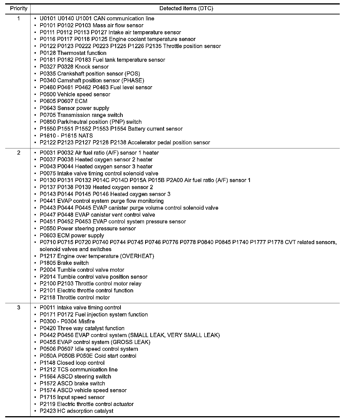 If some DTCs are displayed at the same time, perform inspections one by one based on the following priority chart.