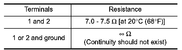 3.Check resistance between intake valve timing control solenoid valve terminals as follows.