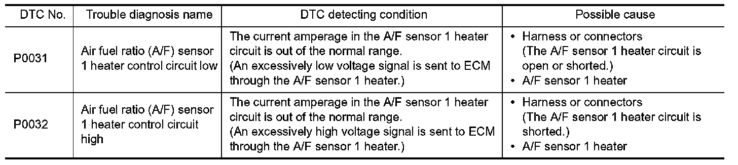The ECM performs ON/OFF duty control of the A/F sensor 1 heater corresponding to the engine operating condition to keep the temperature of A/F sensor 1 element at the specified range.