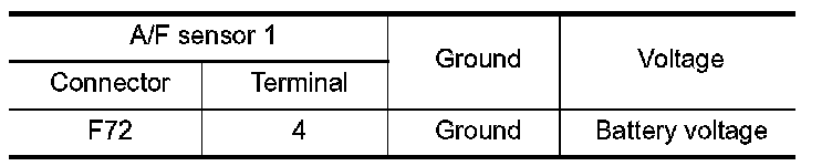 3.Check the voltage between A/F sensor 1 harness connector and ground.