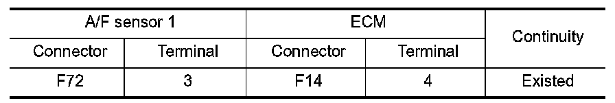 3.Check the continuity between A/F sensor 1 harness connector and ECM harness connector.