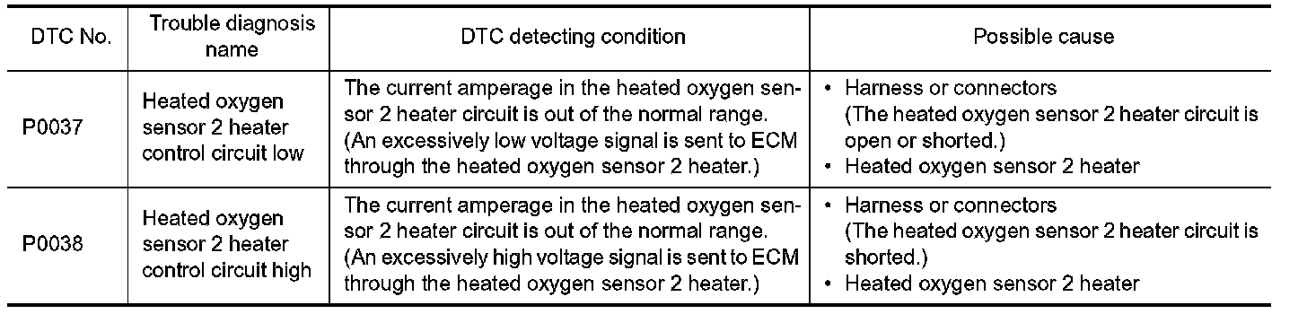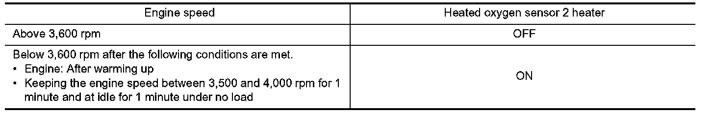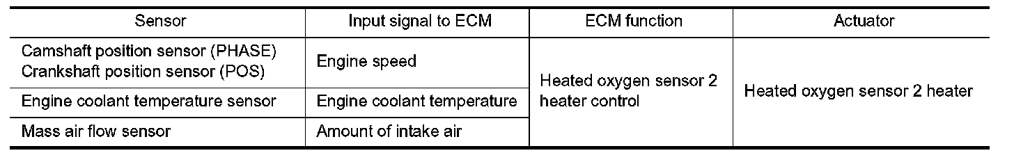 The ECM performs ON/OFF control of the heated oxygen sensor 2 heater corresponding to the engine speed, amount of intake air and engine coolant temperature.