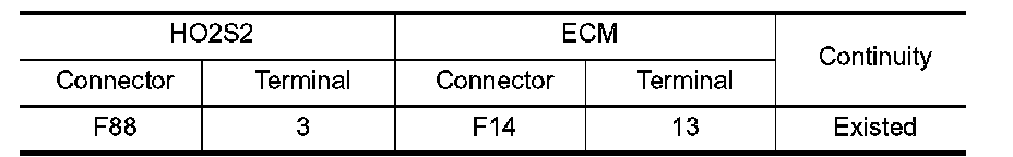3.Check the continuity between HO2S2 harness connector and ECM harness connector.