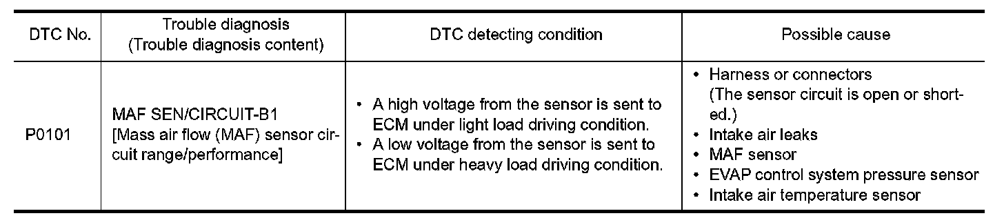 If DTC P0101 is displayed with other DTC, first perform the trouble diagnosis for other DTC.