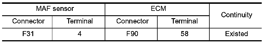 1.Check the continuity between MAF sensor harness connector and ECM harness connector.