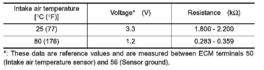 Check intake air temperature sensor. Refer to "Component Inspection".