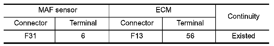3.Check the continuity between mass air flow sensor harness connector and ECM harness connector.