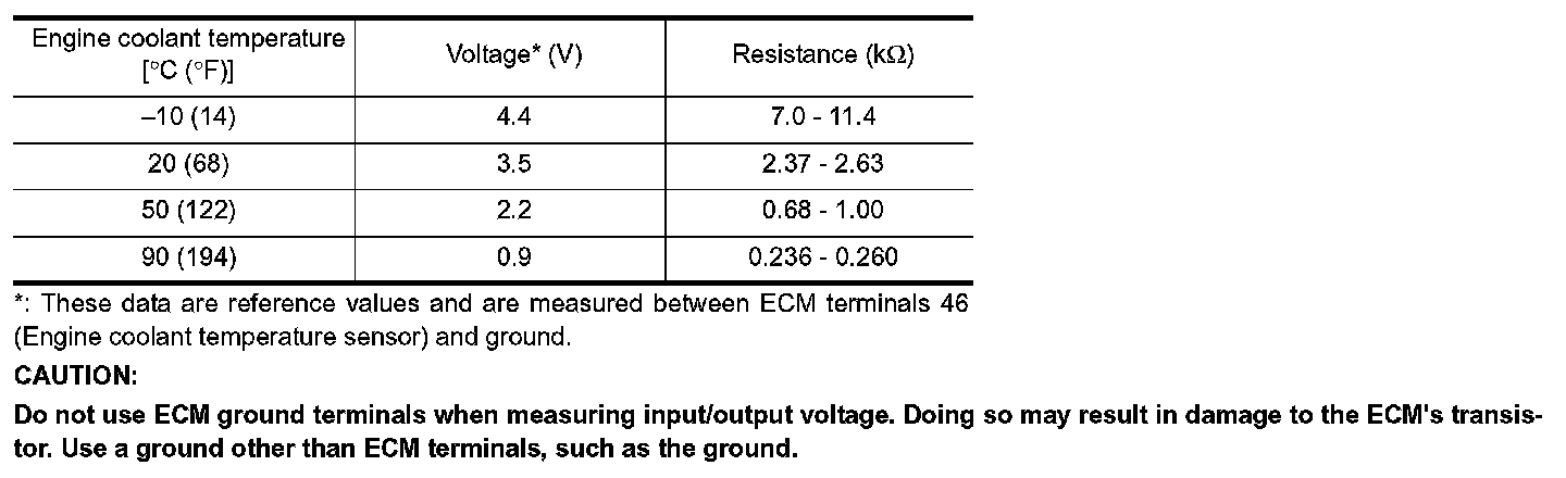 4.Check resistance between engine coolant temperature sensor terminals as follows.