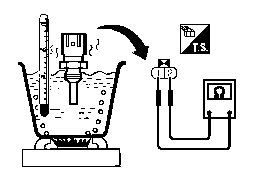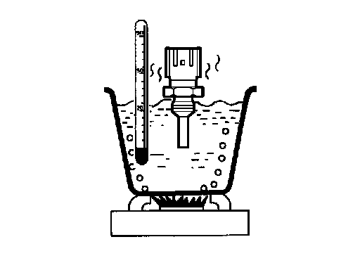 4.Check resistance between ECT sensor terminals by heating with hot water as shown in the figure.