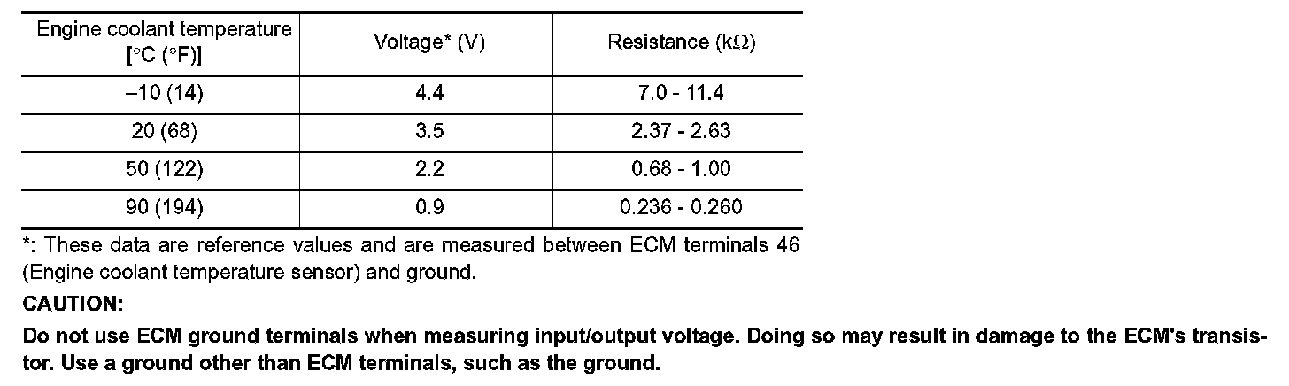 4.Check resistance between engine coolant temperature sensor terminals as follows.