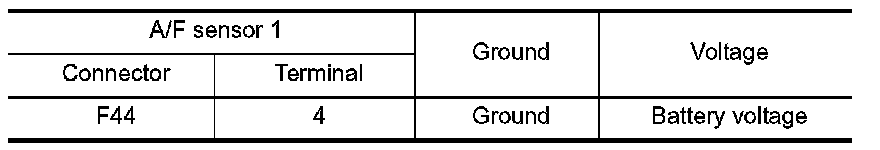 3.Check the voltage between A/F sensor 1 harness connector and ground.