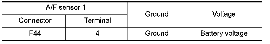 3.Check the voltage between A/F sensor 1 harness connector and ground.