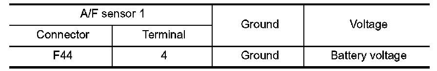3.Check the voltage between A/F sensor 1 harness connector and ground.