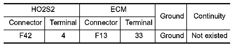 1.Check the continuity between HO2S2 harness connector and ECM harness connector.