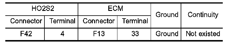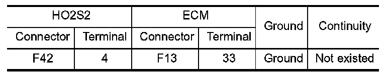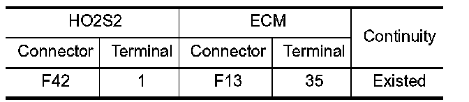 1.Check the continuity between HO2S2 harness connector and ECM harness connector.