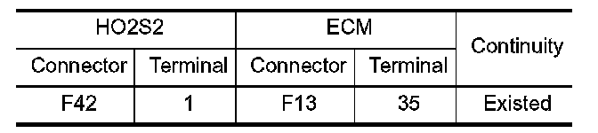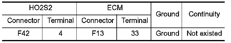 1.Check the continuity between HO2S2 harness connector and ECM harness connector.