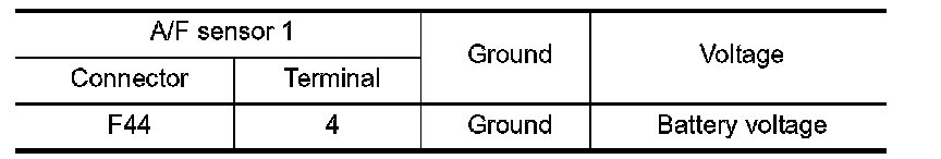 3.Check the voltage between A/F sensor 1 harness connector and ground.