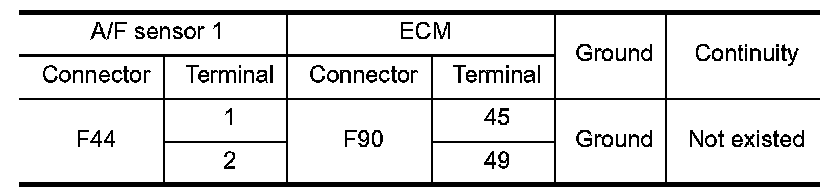 3.Check the continuity between A/F sensor 1 harness connector and ECM harness connector.