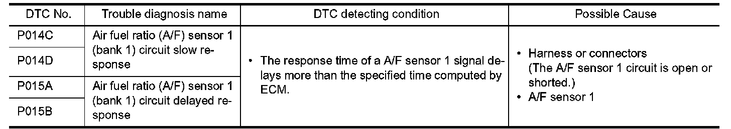 To judge malfunctions, this diagnosis measures response time of the A/F signal computed by ECM from the A/