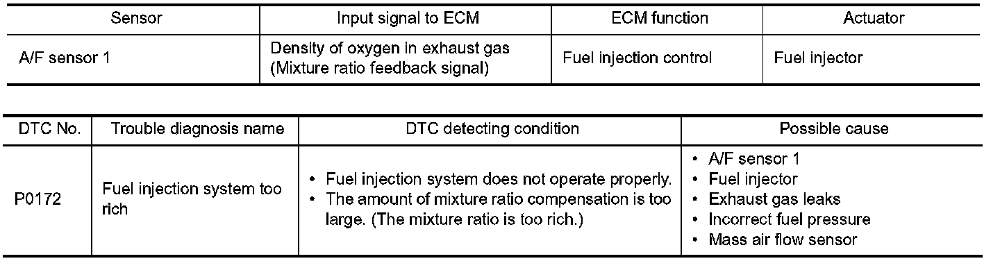 P0172 FUEL INJECTION SYSTEM FUNCTION