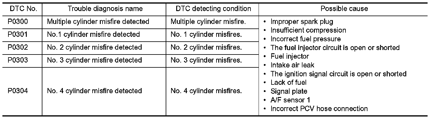 P0300, P0301, P0302, P0303, P0304 MISFIRE