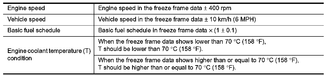 2.Start engine and drive the vehicle under the similar conditions to (1st trip) Freeze Frame Data for a certain time. Refer to the table below.