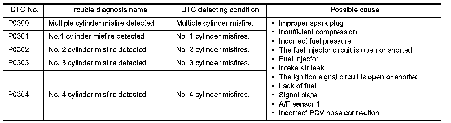P0300, P0301, P0302, P0303, P0304 MISFIRE