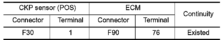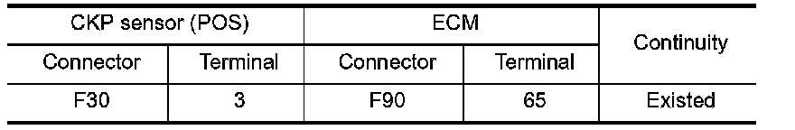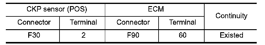 3.Check the continuity between CKP sensor (POS) harness connector and ECM harness connector.