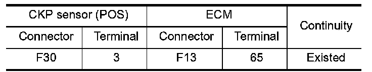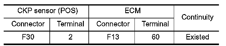3.Check the continuity between CKP sensor (POS) harness connector and ECM harness connector.