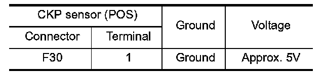 3.Check the voltage between CKP sensor (POS) harness connector and ground.