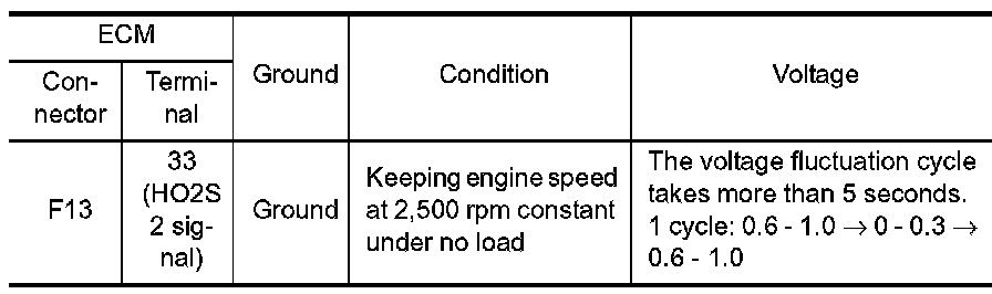 The ECM monitors the switching frequency ratio of air fuel ratio (A/F) sensor 1 and heated oxygen sensor 2.