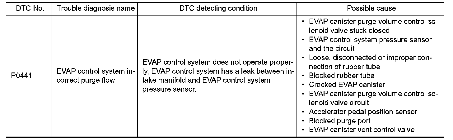 If DTC P0441 is displayed with other DTC such as P2122, P2123, P2127, P2128 or P2138, first perform trouble diagnosis for other DTC.