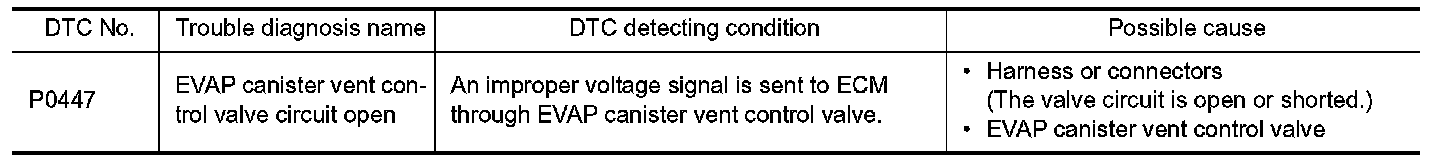 - Harness for open or short between EVAP canister vent control valve and IPDM E/R