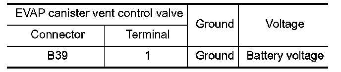 4.Check the voltage between EVAP canister vent control valve harness connector and ground.